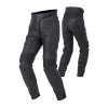 They are crafted entirely from soft yet durable black leather, featuring removable CE-approved knee and shin protectors and generous foam padding sewn into the hips. Accordion leather seams at the waist and knees, as well as stretch panels behind the calves, ensure freedom of movement and an optimal fit. The pants are lined with a breathable and comfortable mesh and close at the waist with a zipper, button, and leather adjustment tab that passes through a D-ring and secures with Velcro.